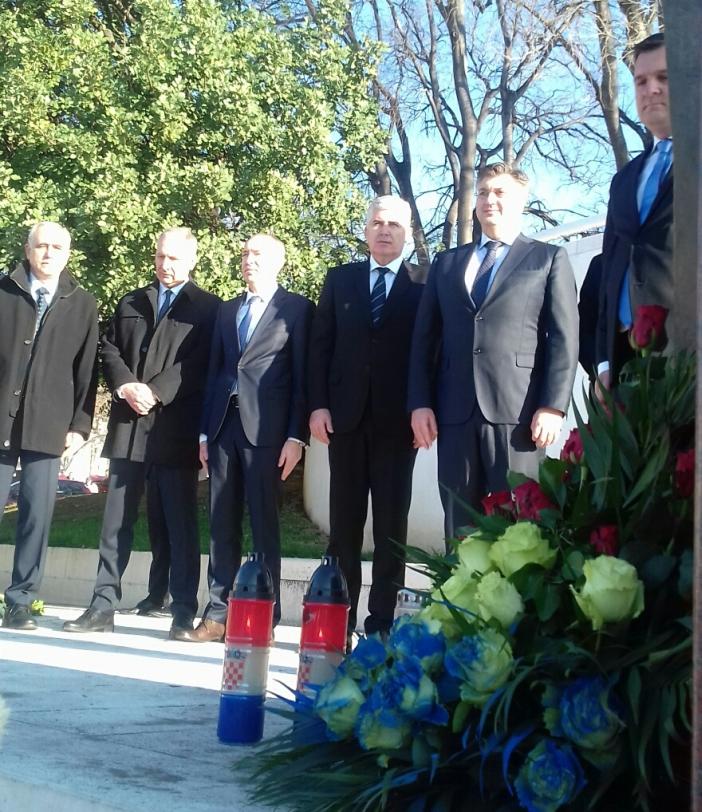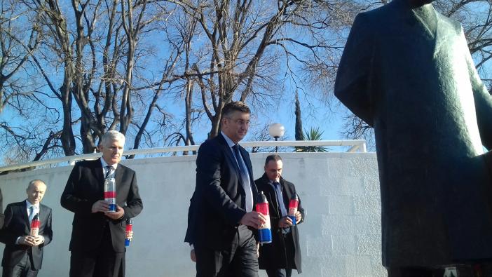 Prije toga izaslanstvo HDZ-a zapalilo je svijeće i postavilo vijence ispred spomenika prvom hrvatskom predsjedniku Franji Tuđmanu na splitskoj Rivi.