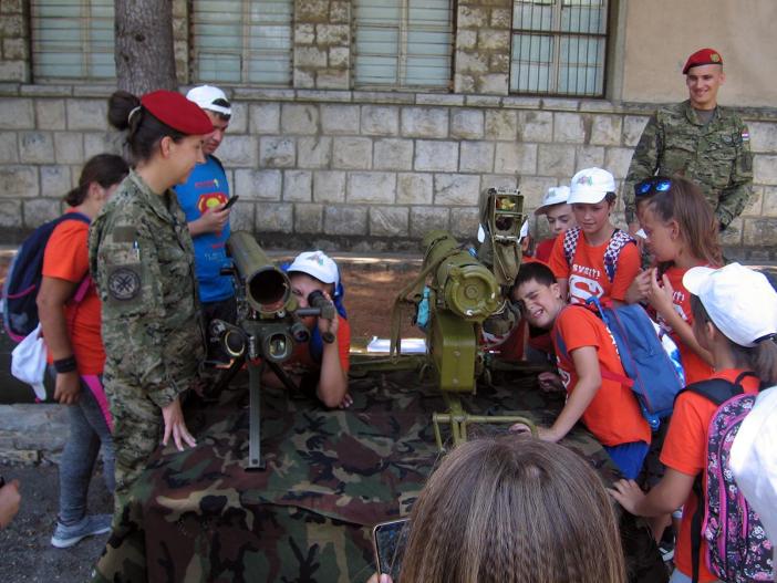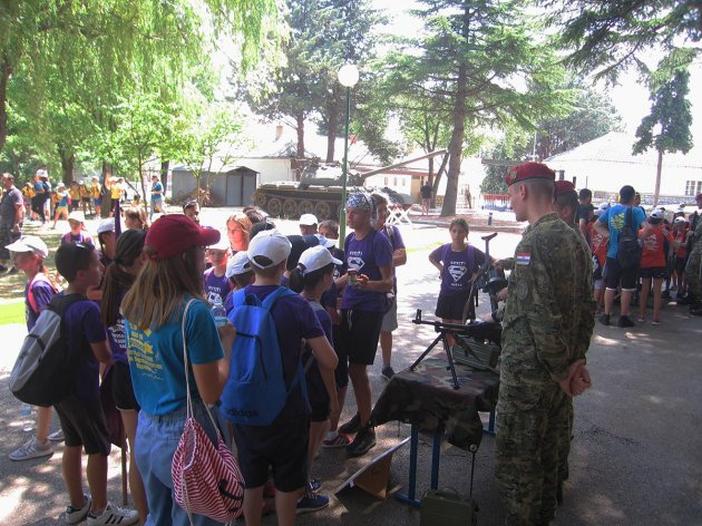 Tim povodom osnovnoškolcima su prezentirana vojna sredstva i oprema koju koriste pripadnici Hrvatske vojske, odnosno pripadnici 3. mehanizirane bojne Pauci.